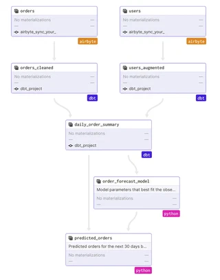 graph integrating airbyte, dbt and python code