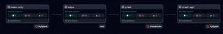 With dagster multiple steps can be chained easily. To showcase the swap of the execution environment: you can see that some assets use Pyspark in local mode. Others use EMR and others use Databricks.