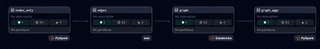 With dagster multiple steps can be chained easily. To showcase the swap of the execution environment: you can see that some assets use Pyspark in local mode. Others use EMR and others use Databricks.