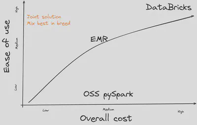For us at ASCII having the flexibility to mix the workloads of both providers has been a game changer. For massively scalable map transformations we can use EMR for cheap processing. Workloads benefit from Photon. They would otherwise get stuck in JVM garbage collection. We can use Databricks. By merging the best of both worlds, we save a lot of money. We can also offer a much better developer experience. Indeed, Databricks is great and a offers a convenient experience - fairly hands-off. Most things magically simply just work. This is different for EMR, more fine-tuning is required.