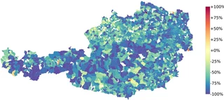 Relative change of mean radius of gyration (ROG) for week of March 2nd and week of March 23rd measured at postcode level.Abstract