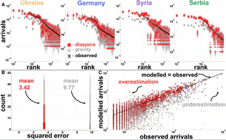 Migration’s impact spans various social dimensions, including demography, sustainability, politics, economy, and gender disparities. Yet, the decision-making process behind migrants choosing their destination remains elusive. Existing models primarily rely on population size and travel distance to explain the spatial patterns of migration flows, overlooking significant population heterogeneities. Paradoxically, migrants often travel long distances and to smaller destinations if their diaspora is present in those locations. To address this gap, we propose the diaspora model of migration, incorporating intensity (the number of people moving to a country), and assortativity (the destination within the country). Our model considers only the existing diaspora sizes in the destination country, influencing the probability of migrants selecting a specific residence. Despite its simplicity, our model accurately reproduces the observed stable flow and distribution of migration in Austria (postal code level) and US metropolitan areas, yielding precise estimates of migrant inflow at various geographic scales. Given the increase in international migrations, this study enlightens our understanding of migration flow heterogeneities, helping design more inclusive, integrated cities